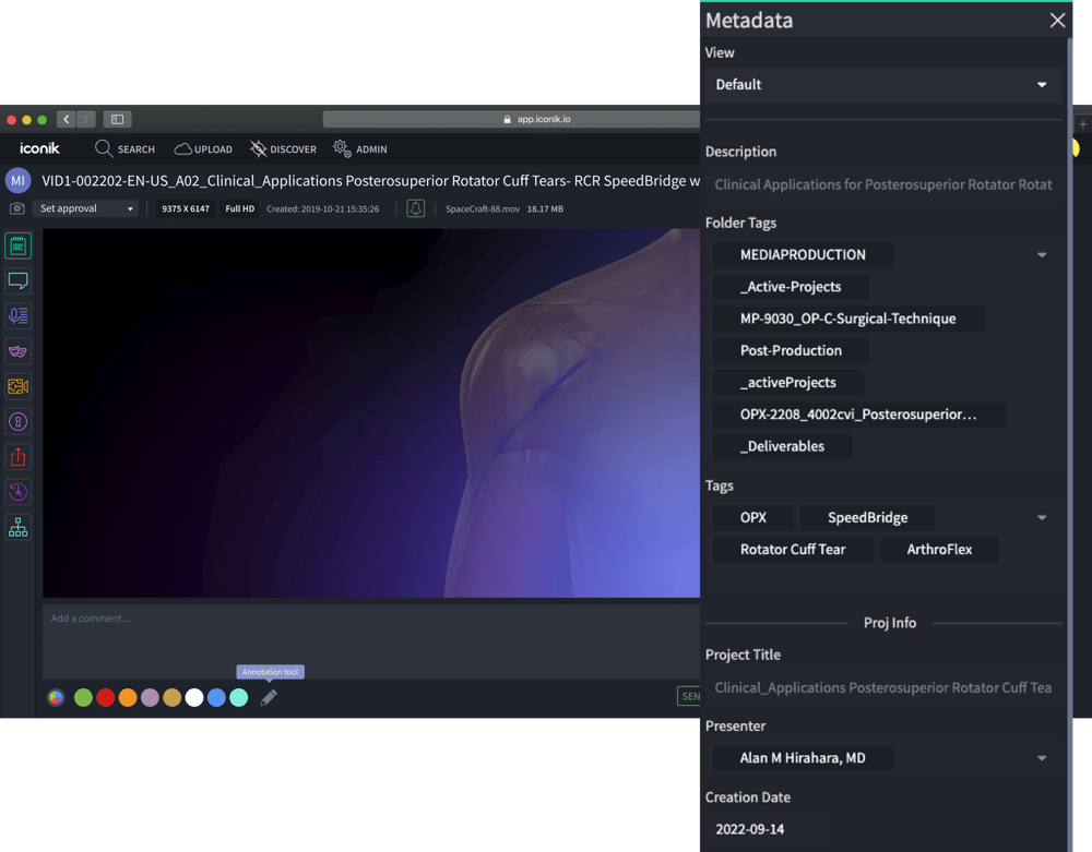 With iconik, Arthrex was able to preserve existing metadata, standardize metadata, and create custom metadata fields and views to make its data more relevant to the business.
