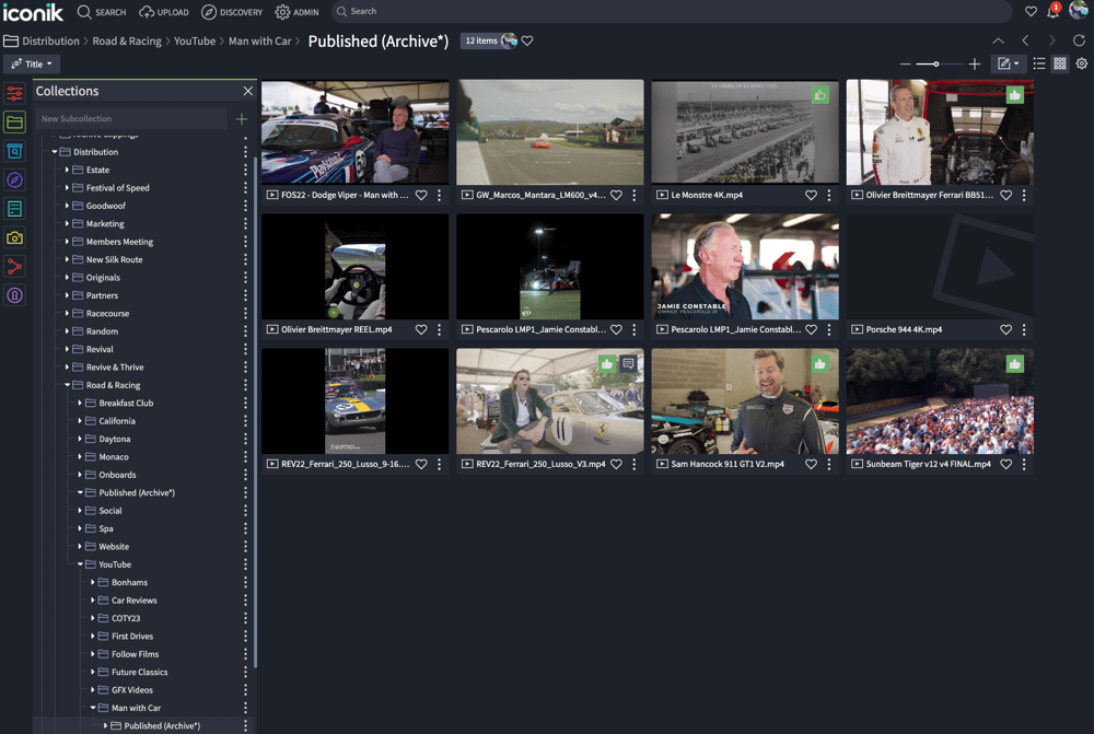 Iconik offered an elegant solution. "To me, one of iconik’s most impressive features is its single-instance storage. Once an asset is uploaded, it can exist only once, regardless of how many iconik Collections it appears in. So, for example, marketing might request an asset – with iconik, we can put the asset into a folder designated for distribution for social media without duplicating the file and taking up double the amount of space; iconik just references it in the new location. I haven’t seen that feature in other media management systems. For us at Goodwood, it’s a hugely advantageous approach.