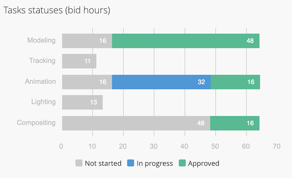 So, if you’re just starting your day in the studio and immediately need to know the current status of all tasks, which tasks still need to be started, any important upcoming dates and what resources are currently assigned, you can apprise yourself of this information in 30 seconds.