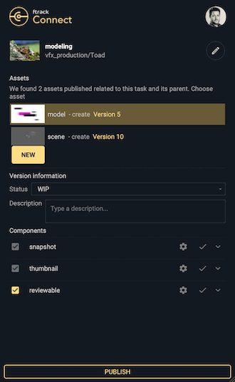 The publisher is used to publish versions of a DCC file into ftrack that are ready for review and collaboration.